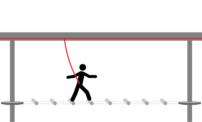 Please note that for maximum safety, the Indiana Bridge is designed with a safety zone of 1.5 meters on both sides. Additionally, there should be a minimum safety clearance of 1 meter beneath the obstacle to ensure participant safety.