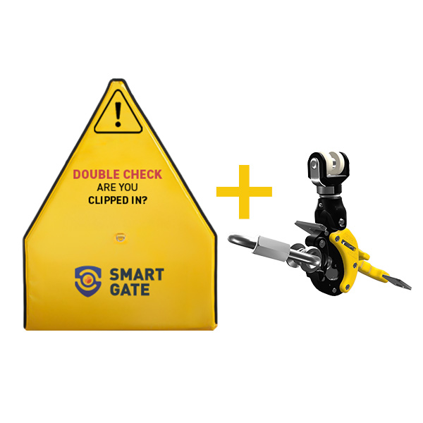 Get the ultimate climbing safety bundle! The SmartGate, a fully automated system for detecting unclipped climbers, provides unmatched safety with audible and visual alerts. Paired with the Self Belay 2.0, featuring its patent-awarded design and enhanced foolproof clipping for climbers as young as 5 years old, this package ensures efficiency and peace of mind for climbing gyms.